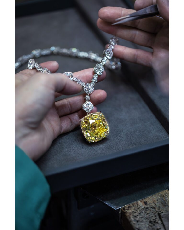 It was still 128.54 carats after cutting and was officially named the Tiffany Diamond. It is recognized as the world’s largest and finest yellow diamond that has never been sold. Only four women are known to have worn the diamond during its lifespan. Mary Whitehouse wore it at the 1957 Tiffany Ball. The diamond was later worn by Audrey Hepburn in the 1961 film Breakfast at Tiffany’s. Lady Gaga wore the diamond to the 91st Academy Awards in 2019. Beyoncé wore this necklace in Tiffany’s Fall/Winter 2021 campaign.