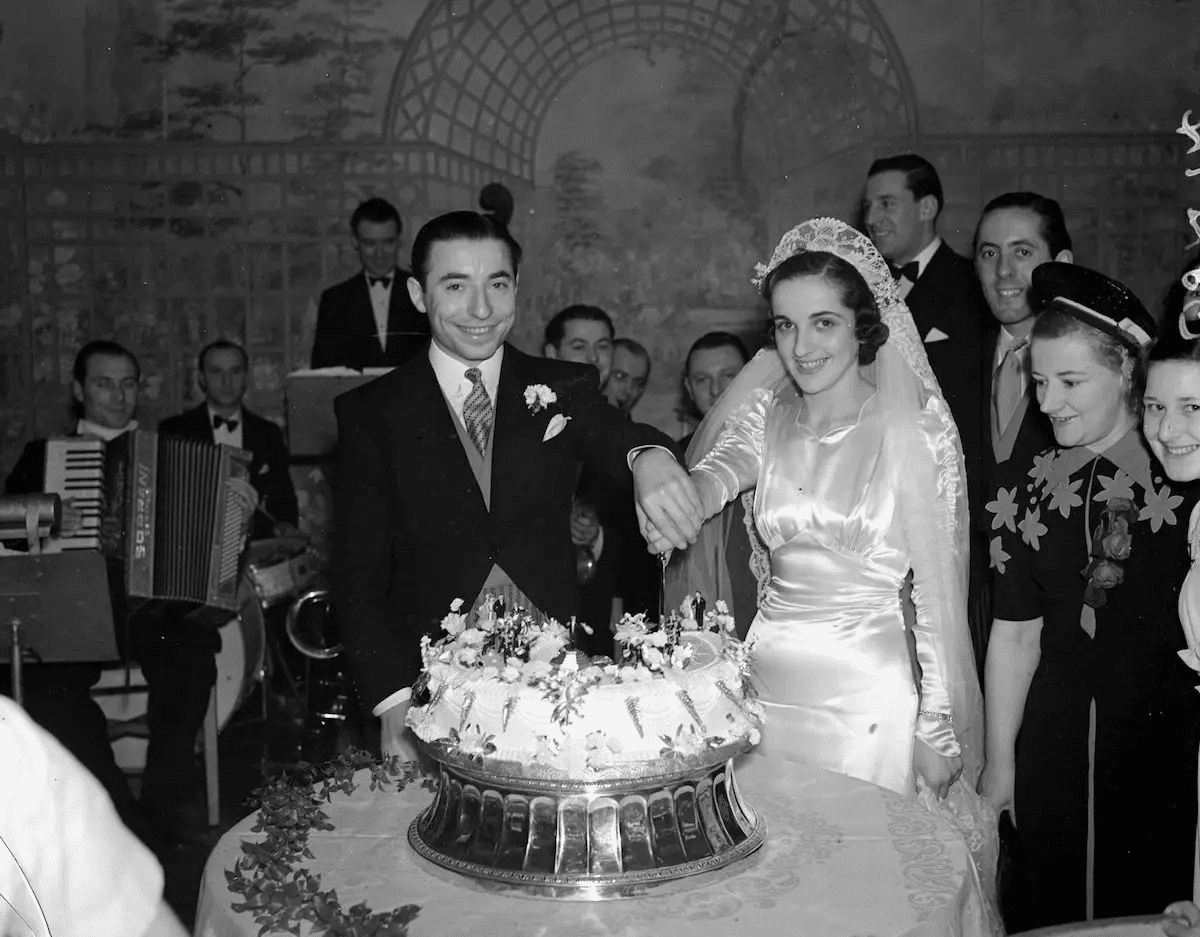В новом 1940-м десятилетии мода на свадебные платья в Нью-Йорке особо не изменилась. В тренде остались облегающие платья с высоким воротником и длинными рукавами.