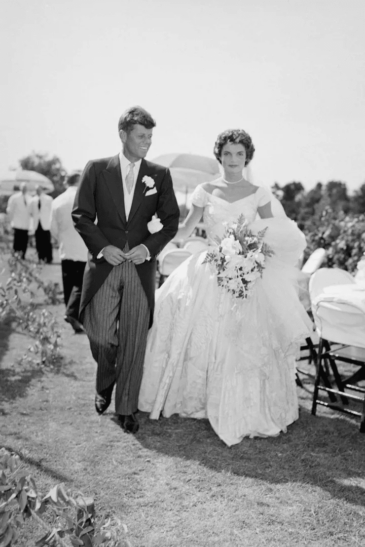 Такое свадебное платье было у самой Джеки Кеннеди жительницы Нью-Йорка, а вскоре и первой леди США. Джеки вышла за Джона Кеннеди 12 сентября 1953 года.